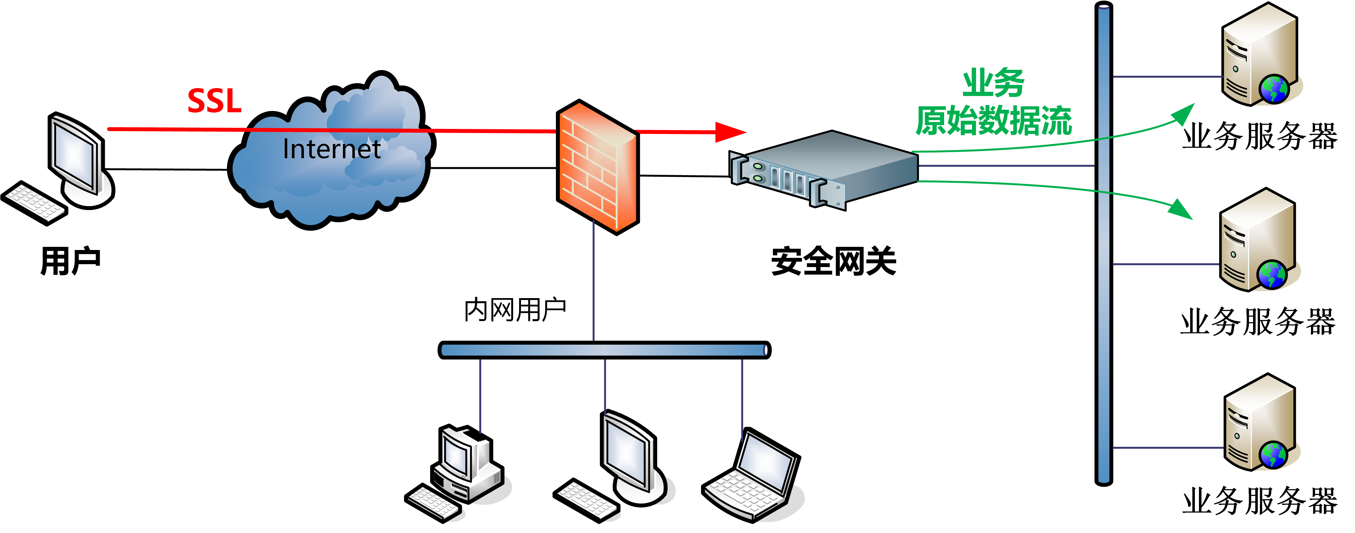 将SSL加解密过程转移到网关之上,极大的降低业务服务器的性能消耗,大幅缩短用户请求的响应时间,并将业务服务器从复杂的密码业务中解放出来。支持弱安全协议过滤和弱算法过滤,支持证书和密钥长度限制,最大程度上降低安全隐患以保障业务安全。
